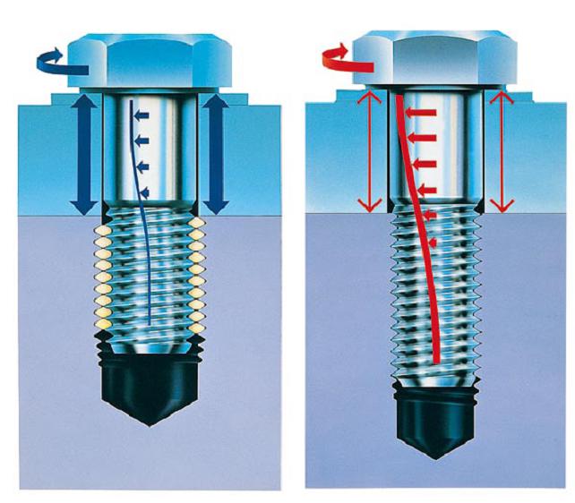 μG=變小且連續(xù)的螺紋摩擦力導(dǎo)致了一個增強了的預(yù)壓力Fv τt=無螺紋部分的扭轉(zhuǎn)應(yīng)力的衰減