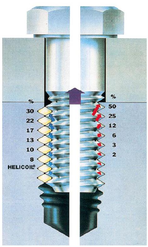 鋼絲螺套增加螺紋連接的承載能力和疲勞強度:鋼絲螺套使螺釘與安裝鋼絲螺套的內(nèi)螺紋底孔之間形成彈性連接,因而消除了內(nèi)螺紋之間的螺距和牙型半角誤差,可在規(guī)定的長度上使每圈螺紋上的負(fù)荷均勻分布,從而加強了內(nèi)螺紋,并能減震,因此可以提高螺紋連接的疲勞強度。